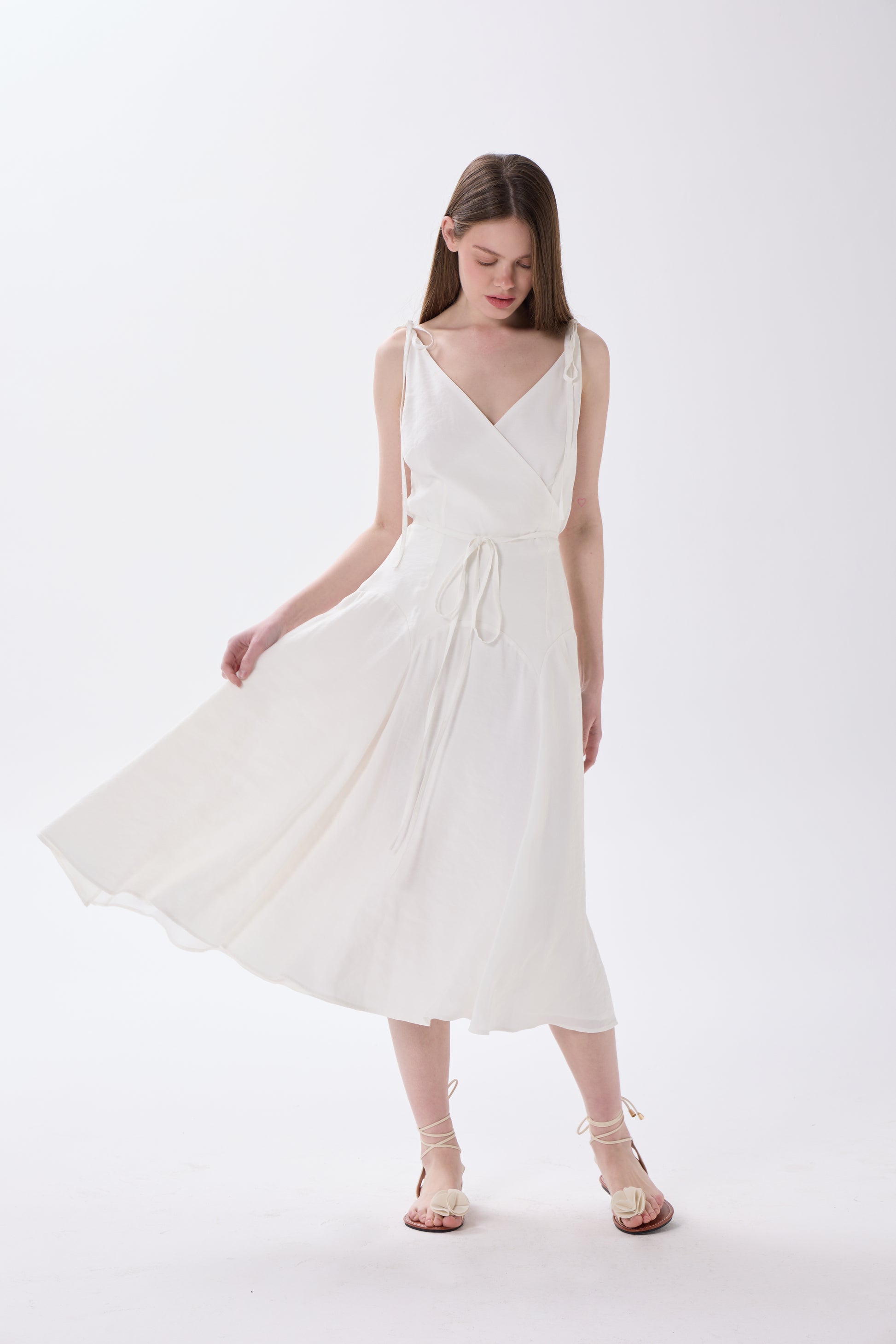 Pera is a wrap over dress with adjustable delicate straps. Comes with skirt detail, Pera is perfect both everyday wear and special occasions.